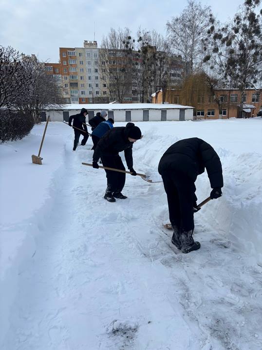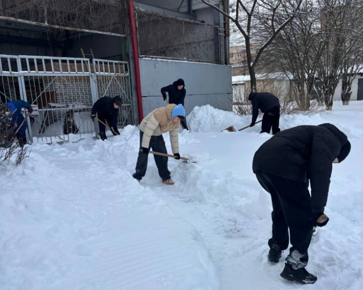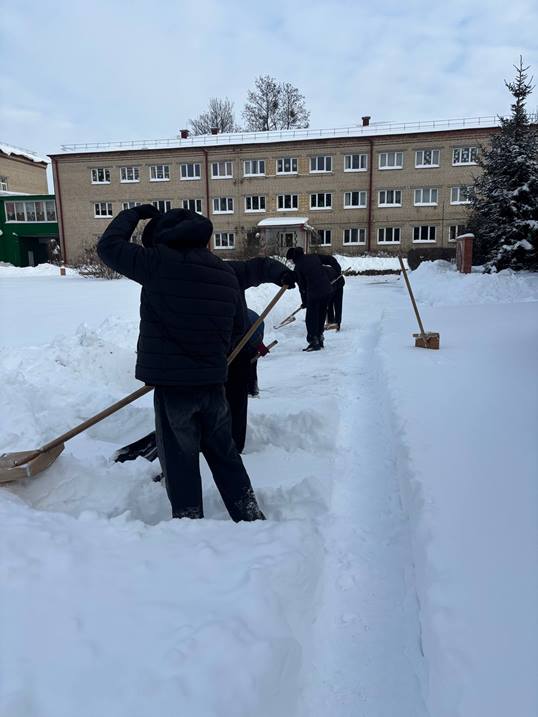 Зимние снегопады — проверка на сплочённость и ответственность.  Сообща ребята продолжают расчищать подъездные пути, тротуары и территорию, чтобы обеспечить безопасность и удобство для всех нас.