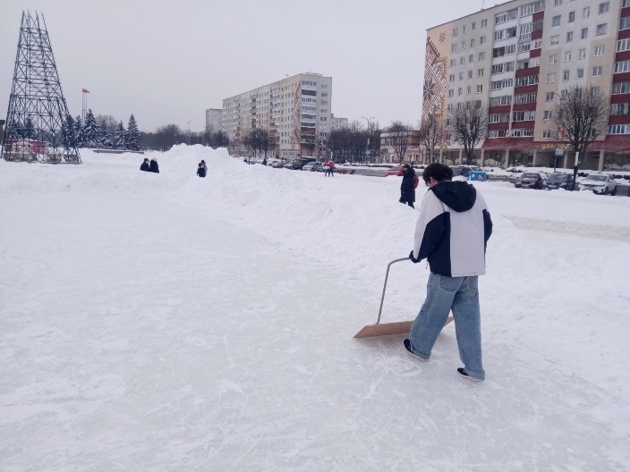 24 января 2026 года учащиеся –волонтеры учреждения образования «Солигорский государственный колледж» активно помогали Физкультурно-спортивному клубу Солигорского района в организации проката коньков на центральной площади г.Солигорска.