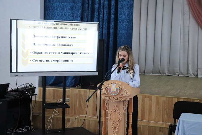 С приветственным словом к участникам мероприятия обратилась директор колледжа Татьяна Николаевна Проходская. В своем выступлении она отметила важность тесного взаимодействия учреждения образования с организациями-заказчиками кадров, которое направлено на получение учащимися актуальных знаний и навыков, соответствующим требованиям современного рынка труда.