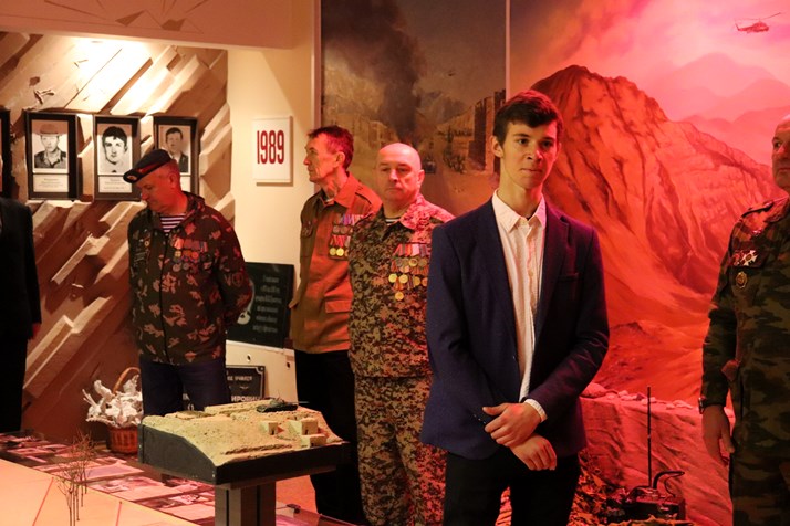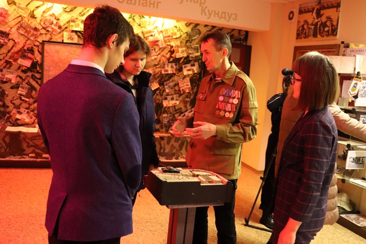 Митинг продолжился в музее колледжа, где был представлен макет диорамы, воссоздающий военные действия афганской войны.  Макет изготовил и подарил музею колледжа учащийся политехнического отделения учебной группы 823п Бельский Ярослав.