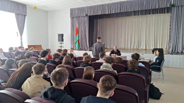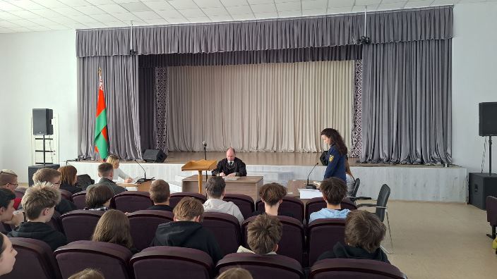 В учреждении образования «Солигорский государственный колледж» 31.03.2026 организовано выездное заседание суда. Слушали уголовное дело в отношении гражданина, который, пренебрегая законом, дважды управлял автомобилем в состоянии алкогольного опьянения в течение одного года. Суд вынес обвинительный приговор. Учащиеся смогли воочию увидеть неотвратимость наказания за нарушение правил дорожного движения, связанное с управлением транспортом в нетрезвом виде.