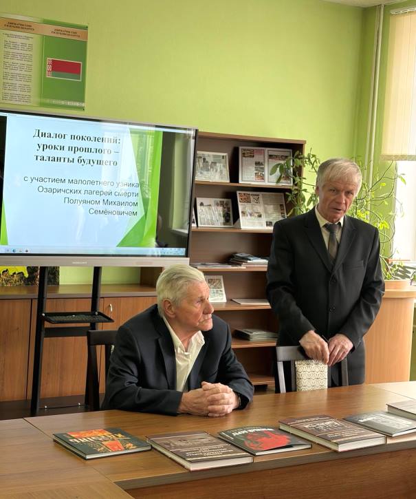 10.04.2026 в день руководителя по военно-патриотическому воспитанию в рамках XV педагогического марафона «Воспитывая, образовывая, развивая - формируем будущее», а также накануне Международного дню освобождения узников фашистских концлагерей в УО «Солигорский государственный колледж» состоялся круглый стол «Диалог поколений: уроки прошлого – таланты будущего». Ключевая сила мероприятия – подлинность, участие малолетнего узника Озаричского лагеря смерти. В эпоху информационной войны и попыток переписать историю Второй мировой войны голос очевидца и живого свидетеля истории приобретает колоссальный вес. Руководителем по военно-патриотическому воспитанию Макиным Д.П. для ребят проведен небольшой экскурс в историю, где главной «точкой» стало живое слово человека, прошедшего через Озаричский лагерь смерти – один из страшных символов нацистской политики геноцида на территории Беларуси (СССР). Узник, Полуян Михаил Семёнович, не просто перечислил факты, а передал ощущение ледяного отчаяния лагеря, где у детей брали кровь для немецких солдат, и невероятную волю к жизни. Для молодых людей, привыкших к экранному насилию, реальная история одного человека произвела эффект «разорвавшейся бомбы».